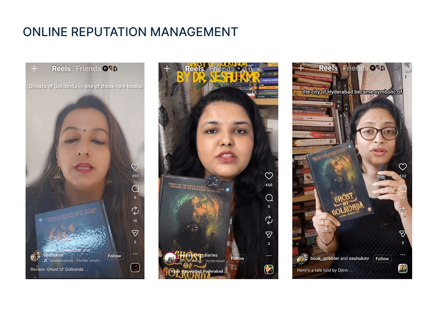 Following this, when Seshu launched his second book Ghost of Golconda — a graphical thriller novel — we executed a premium influencer-led campaign. We shortlisted five high-reach, professional book reviewers, ensuring depth over volume. The influencers read the book and created long-form and short-form content, distributing it across platforms such as Instagram, X, and Goodreads, with storytelling-led promotion rather than transactional endorsements.